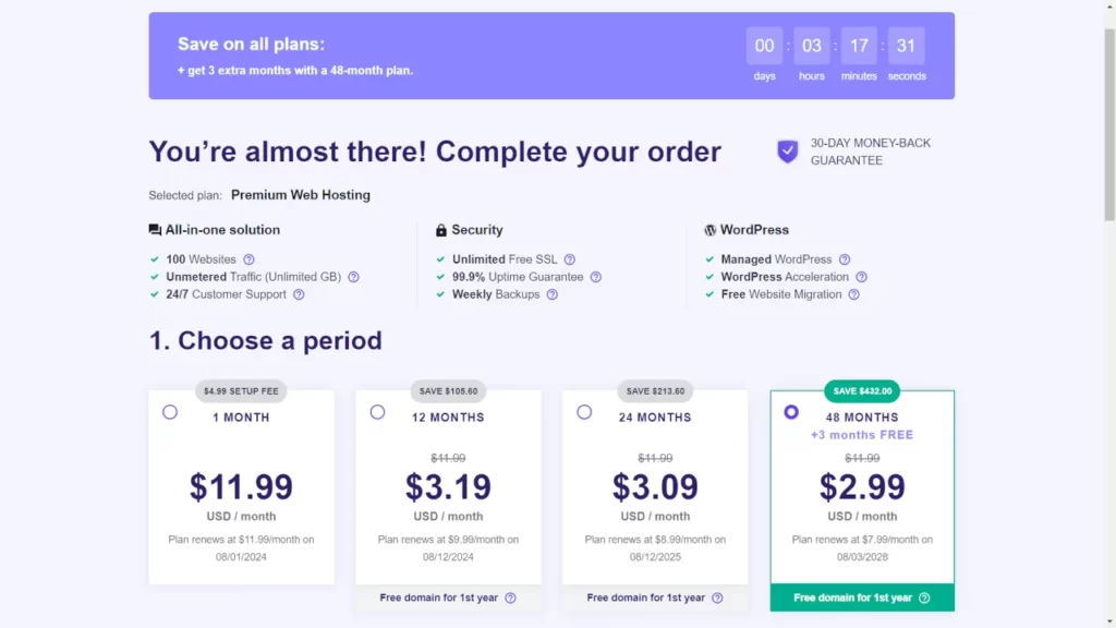 Remember: Premium hosting plan $11.99 $2.99/mo special